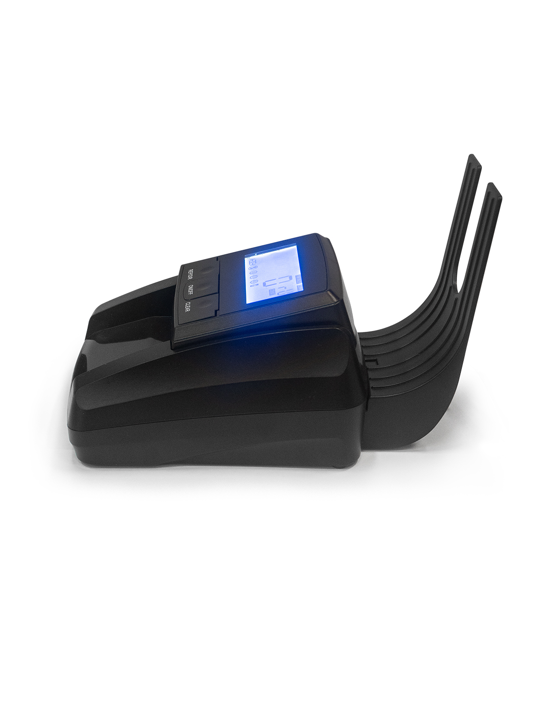 Прибор работает со скоростью до 100 банкнот в минуту и имеет яркий LED дисплей, который отображает номиналы, количество и сумму проверенных банкнот, что удобно для визуального контроля и видеонаблюдения. Конструкция продумана так, чтобы обеспечивать легкий доступ к купюропротяжному механизму для своевременной чистки сенсоров. В устройстве применена функция автоматической калибровки датчиков, что упрощает обслуживание.