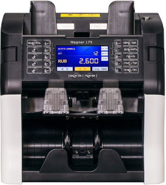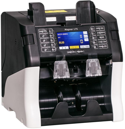 Двухкарманный сортировщик банкнот Magner 175 Digital (Magner 175) — это профессиональное решение для быстрой, точной и безопасной обработки наличности в учреждениях с высоким оборотом: банках, пунктах выдачи наличных, кассах ритейла. Устройство оснащено передовыми сенсорными технологиями (CIS-датчики, УФ, ИК, магнитные метки и др.), что позволяет с высокой надёжностью определять подлинность купюр, сортировать банкноты по номиналу, ориентации и состоянию (рваные, загрязнённые, заломанные).