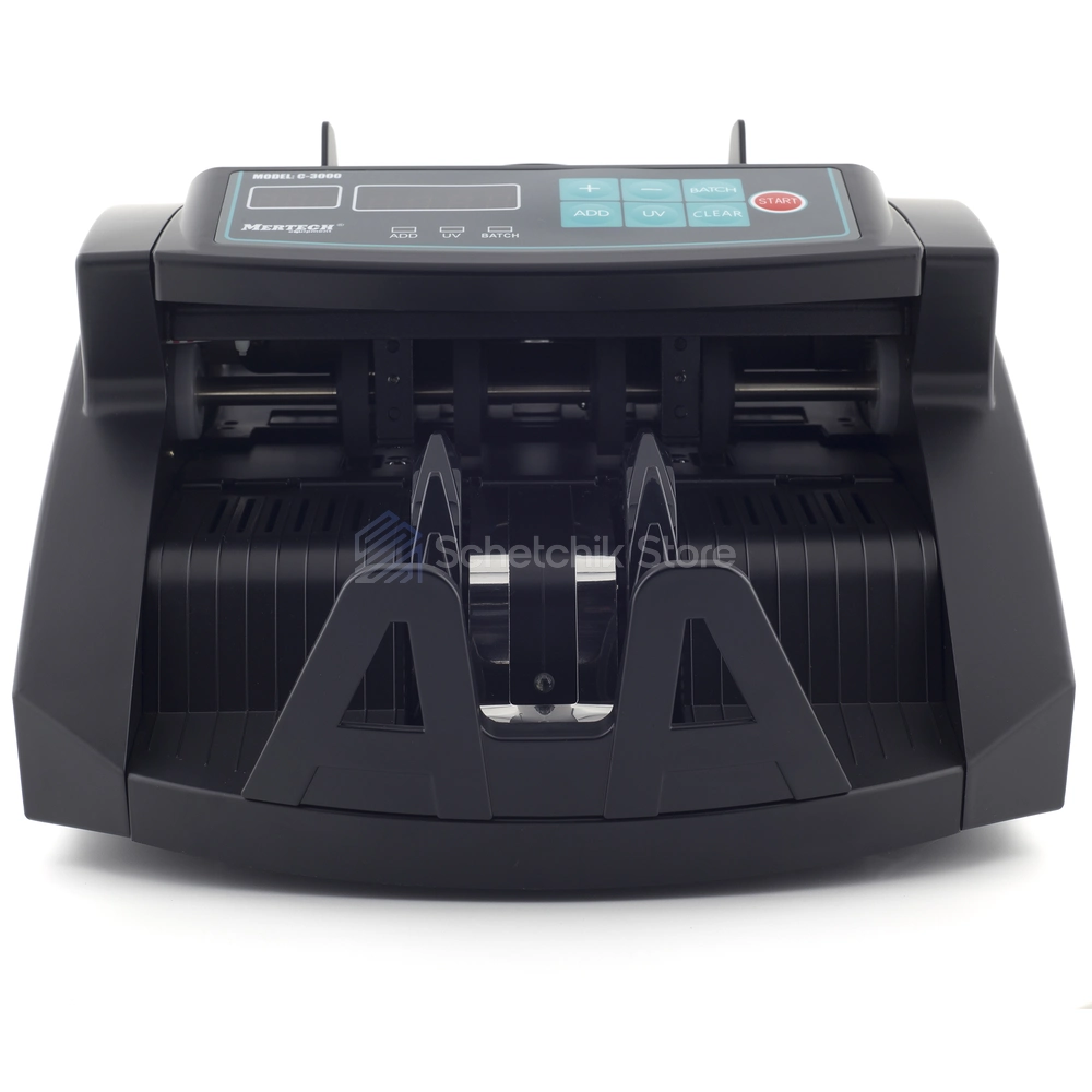 MERTECH C-3000 способен обрабатывать большие объёмы наличных: счётчик принимает купюры пачками, автоматически суммирует их номиналы и сортирует по состоянию и ориентации. Цветной LED-дисплей отображает количество купюр, общую сумму, номинал и сигналы о возможных ошибках, что облегчает контроль и ускоряет работу кассиров и сотрудников финансовых отделов.