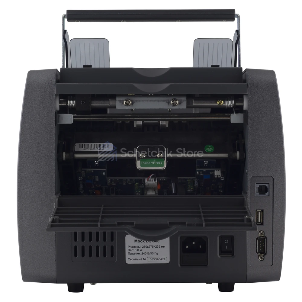 Счётчик банкнот Mbox DS-500 — профессиональное устройство для быстрого и точного подсчёта наличных в банках, торговых точках, кассах и офисах. Он поддерживает автоматическое распознавание купюр, подсчёт пачек и суммирование общей стоимости, что существенно ускоряет работу с наличными и снижает вероятность ошибок. Устройство оснащено высокоточным сенсорным механизмом, который предотвращает пропуск или дублирование банкнот, а также автоматически корректирует показатели при обнаружении сдвоенных или повреждённых купюр.