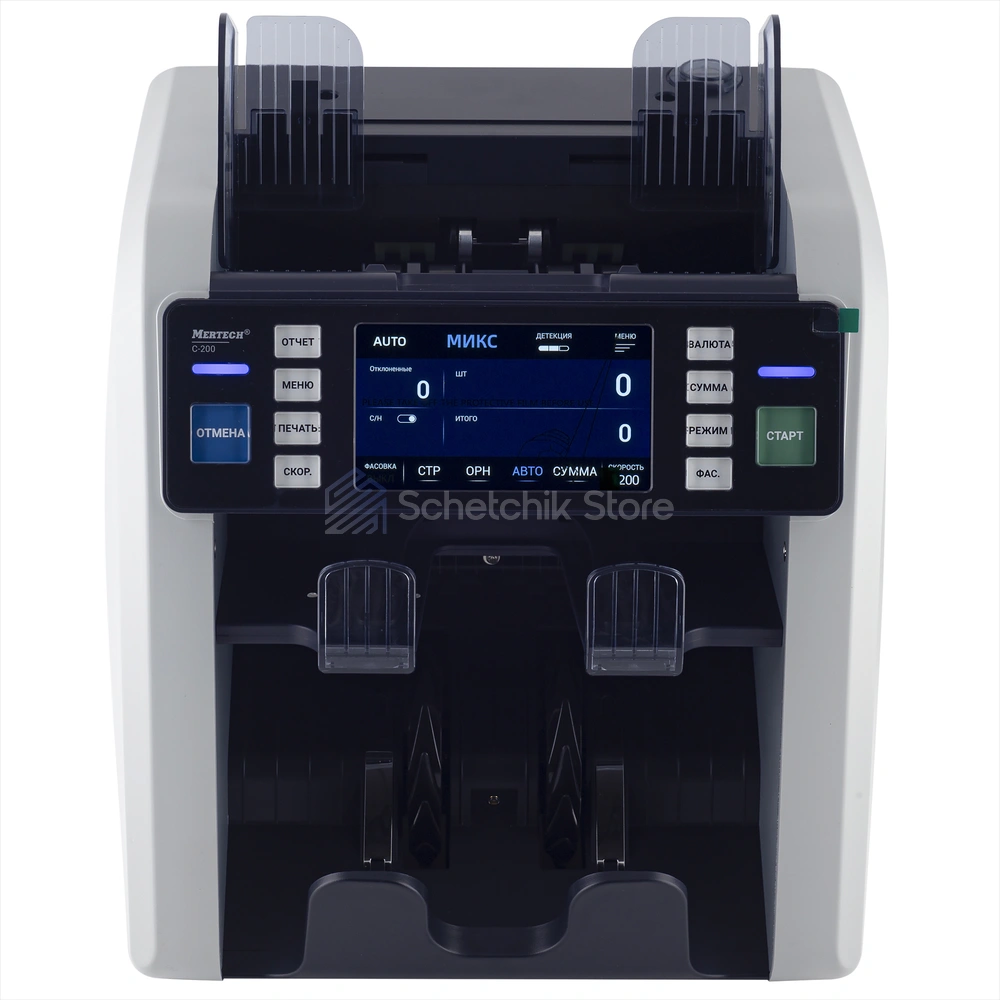 Счетчик банкнот с детектором подлинности MERTECH C-200 DOUBLE CIS MG touch screen – это профессиональное и высокотехнологичное устройство, предназначенное для быстрого подсчета и надежной проверки подлинности банкнот. Оснащен передовыми технологиями двойной CIS-детекции и магнитного контроля (MG), что позволяет максимально точно выявлять поддельные купюры.