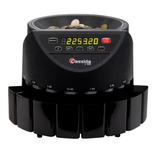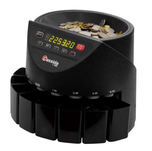 Счетчик-сортировщик монет Cassida C100 — это компактное и надежное устройство, предназначенное для автоматического пересчета и сортировки монет по номиналам. Он широко используется в розничной торговле, банках, кафе, на транспорте и в вендинговых компаниях.